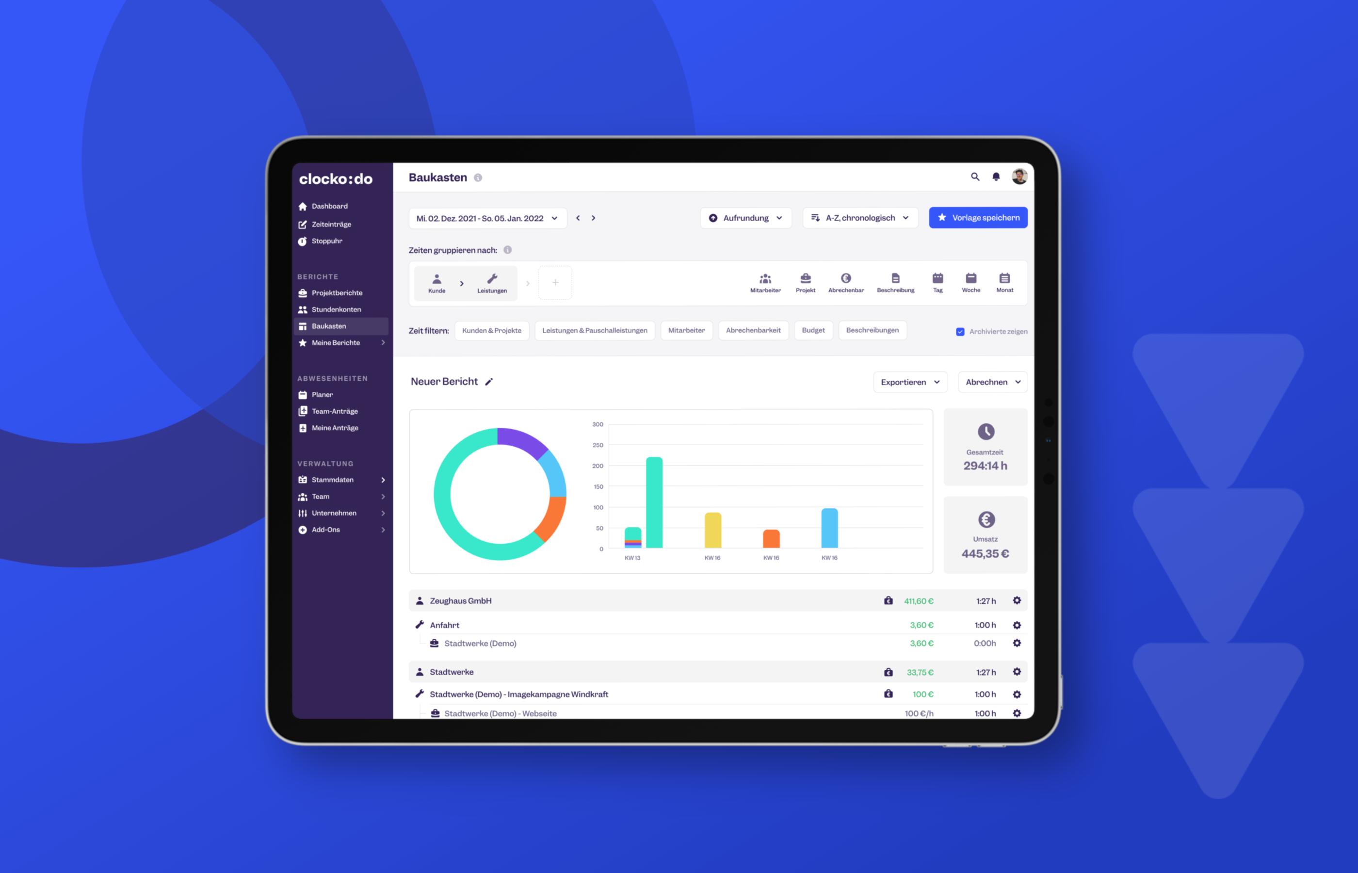 Im Rahmen des Redesigns von Clockodo habe ich die Benutzeroberfläche und Nutzererfahrung grundlegend überarbeitet, um die Funktionalität und Ästhetik der Zeiterfassungssoftware zu verbessern. Ziel war es, die Anwendung intuitiver und benutzerfreundlicher zu gestalten, während gleichzeitig die Leistungsfähigkeit erhalten bleibt.